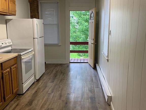 This lovely home offers 3-stories with a full unfinished basement for ample storage and laundry hook ups. There are 3 bedrooms (2 on the 2nd floor and one large room, with loft, on the 3rd floor), a spacious bathroom with new vinyl plank flooring, and a bonus office nook (also on the 2nd floor) with desk included! Brand new vinyl plank flooring throughout first floor, as well! Fenced in back yard with deck off of kitchen. Covered front porch hosting a large window allowing ample natural light to fill the living room. Street parking in front and rear of property. Electric baseboard heat. There are washer/dryer hook ups in basement. Tenant must provide own washer/dryer. Owner pays garbage. Tenant pays water/sewer, and electric. Tenant is responsible for keeping grass cut, maintaining yard, curb, and sidewalks in front and rear of property and clearing of snow and ice. First and last months' rent and security deposit due at lease signing. Sorry, no pets. No smoking.