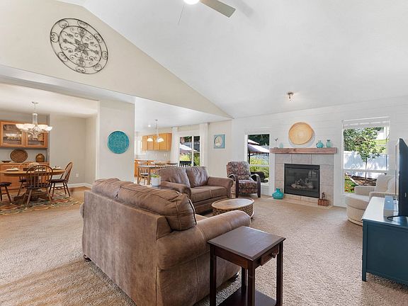 Don't miss this 6 bed/3 bath /3 car garage Rancher with Main-level living right off Hatch Road. At the end of a private cul-de-sac, you'll experience a large open-concept main floor, perfect for entertaining and all the convenience of main floor amenities. With cathedral ceilings, sunlight just pours into the space. You'll experience the living room with gas fireplace and kitchen and dining spaces immediately, with the the Primary Suite, 2nd bedroom and office/bedroom off that large open room. The furniture possibilities are endless here. Primary bedroom suite boasts a walk-in closet, dual sinks, standing shower and garden tub with the best garden view. Head downstairs into a huge living room with space for a pool table and projector set ups, both! Don't miss the additional 3 bedrooms along with another full bathroom while you're downstairs. The outdoors have been transformed into a garden oasis, bring your dreamy patio furniture with you! Bidwell Park moments away. Mead School District. All appliances stay.