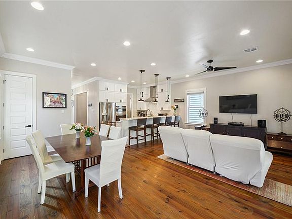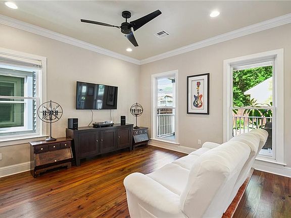 Modern living with historic charm in the heart of the Marigny! Enjoy the best of both worlds in this beautifully designed home built in 2018, gated off-street parking, and timeless architectural details like soaring ceilings, rich hardwood floors, and a walk-out balcony. Unwind in your spacious primary suite, complete with a spa-like bathroom and a generous walk-in closet. Upstairs, you’ll find two additional bedrooms sharing a full bath—ideal for family or guests. Downstairs, a separate guest suite offers privacy and flexibility for visitors or extended stays. The thoughtfully designed kitchen flows seamlessly into the open-concept living and dining areas, perfect for everyday living or entertaining. French doors and expansive windows lead to a covered back porch and a fully fenced backyard—great for pets, kids, gatherings, or simply relaxing. A bonus room off the kitchen adds versatility as a home office, playroom, or formal dining space. Ample storage throughout, including an outdoor shed. Located in flood zone X, just steps from the best downtown spots, including the new farmer’s market. And come Mardi Gras, enjoy unbeatable parade views right from your balcony!