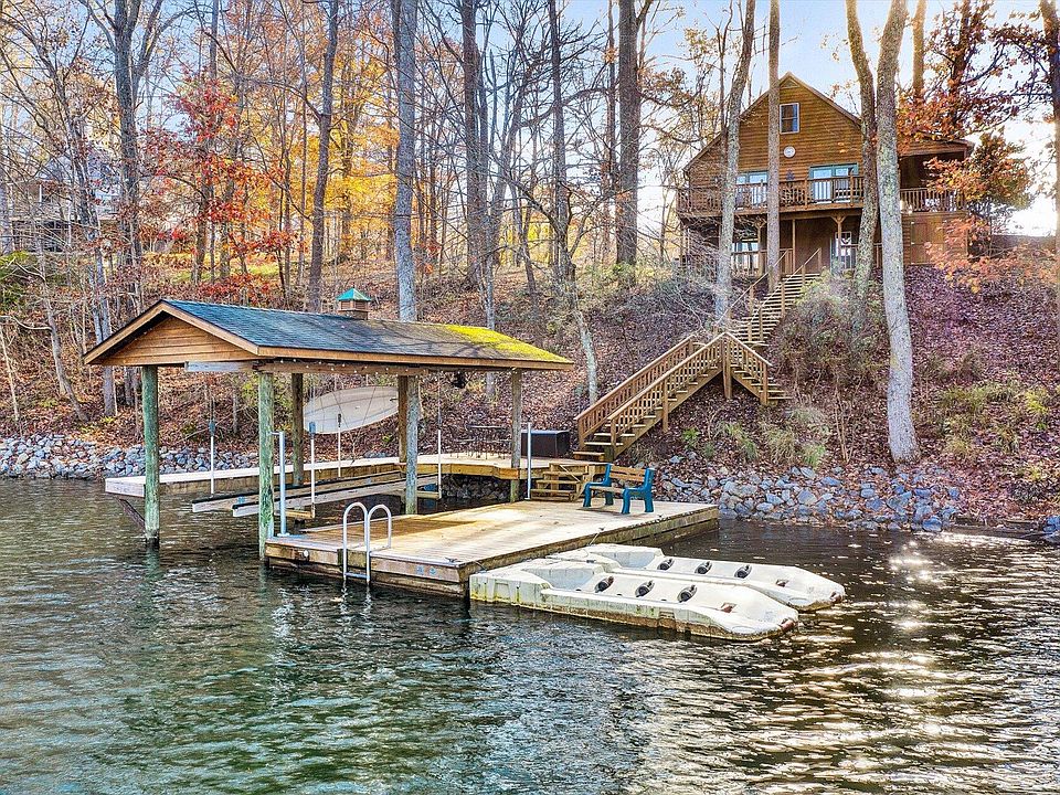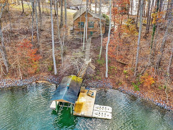A perfect waterfront cottage in a wonderful deep-water cove; excellent location tucked in a peaceful cove just off the main channel, close to Halesford Bridge & lake shopping centers. Positioned on a wide lot w/ beautiful lake views & only a few steps to the single slip dock w/ stationary, large floater & boat hoist. Being sold turn key so you can come ready to enjoy the lake! A large covered porch welcomes you into the entry level which features a nice living room, kitchen, master bedroom w/ private bathroom, full guest bathroom & laundry; the living room has double doors that lead out to an open lakeside deck. Two guest bedrooms make up the upper level. The Lower level holds the family room that leads out to a concrete lakeside patio as well as a large unfinished storage room that is perfect for storing lake toys & provides potential to finish off more space in the future if desired. There is also an exterior storage area undeath the deck that is accessible from the lakeside. Paved driveway & walkway that leads to the front porch and around to the lower-level patio. Property would make for a great vacation and/or rental home & provides excellent opportunity for future expansion.