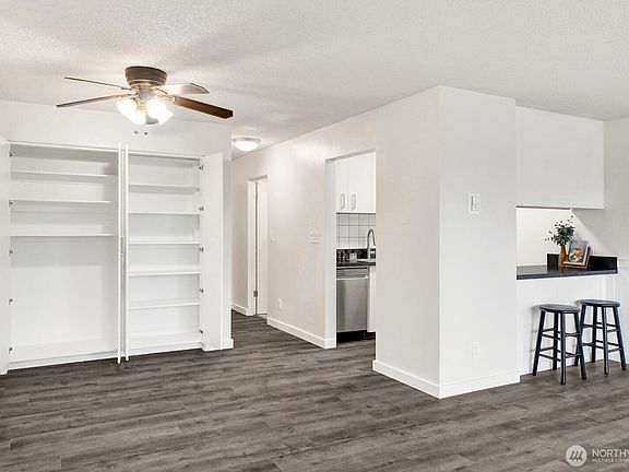 Live where convenience meets charm! This beautifully updated 1-bedroom, 1-bath condo offers modern style, thoughtful upgrades, and a peek-a-boo bay view. The kitchen shines with custom soft-close cabinetry, new appliances, and LVP flooring that flows throughout. The bathroom features gorgeous tile and marble countertops, while custom closets, abundant storage, new blinds, custom wainscoting, and updated wall heaters add both comfort and character. In-unit washer/dryer combo makes everyday living easy. Step onto your private balcony for fresh air and a glimpse of the bay. Storage area & laundry in building. Just minutes from downtown, WWU, shopping, dining, hiking, the waterfront, and trails—everything you love is right outside your door.