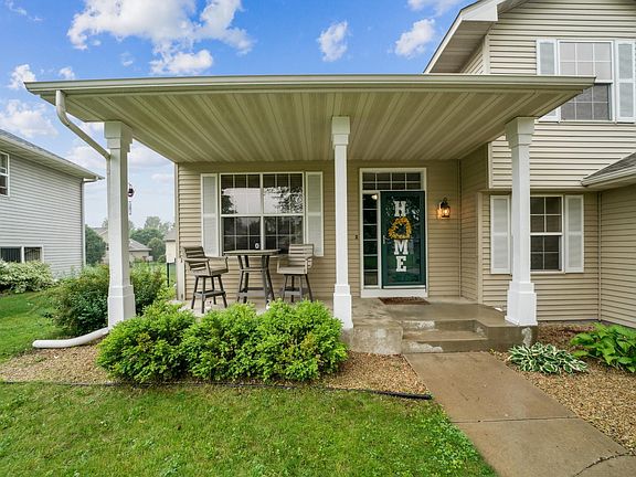 kitchen / dining room area and main level laundry room. Large master bedroom with a walk in closet and master bathroom. Hardwood floors and fresh new carpet make this home very inviting. Dreamy heated 3 car garage with a hobby / workspace and built in storage cabinetry. Enjoy the fenced in backyard, entertaining paver brick patio, or relaxing on the front porch. All of this in an awesome location with easy access to HWY 169. Come and see today!