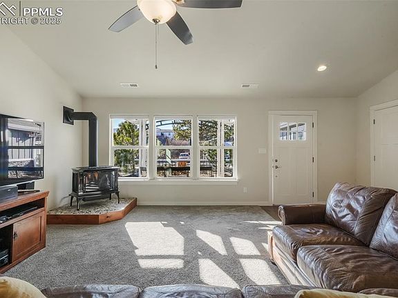 Welcome to this beautifully maintained ranch-style home in the highly sought-after Lewis Palmer District 38, where privacy, beauty, and convenience come together. Situated on a spacious .25-acre lot with no HOA, this property is a true sanctuary, featuring 21 carefully selected trees, including piñon pines, cottonwoods, quaking aspens, ponderosa pines, sugar maple, chokecherry, and scrub oak, creating a serene and private setting. Step inside to an open-concept layout that seamlessly connects the spacious living and dining areas. A cozy wood-burning stove adds warmth and charm, while a neutral color palette throughout creates a welcoming atmosphere. The kitchen is designed for both style and function, featuring stone countertops, stainless steel appliances, a single-basin sink, an island, and direct access to the backyard, making entertaining a breeze. The primary suite is a private retreat, offering backyard access, an ensuite bathroom with step in shower and a generous walk-in closet. Two additional bedrooms, a full hall bathroom, and a dedicated laundry room provide ample space for family, guests, or a home office. Step outside to your fenced yard, a true outdoor oasis with robust landscaping, a large poured concrete patio, and a variety of mature trees that offer both beauty and privacy. A private gate provides direct access to the Santa Fe Trail, making it easy to enjoy miles of scenic hiking, biking, and outdoor recreation right from your own backyard. This home is the perfect blend of nature and comfort, offering a peaceful retreat while still being close to shopping, dining, and top-rated schools. Schedule your showing today and experience this incredible property for yourself!