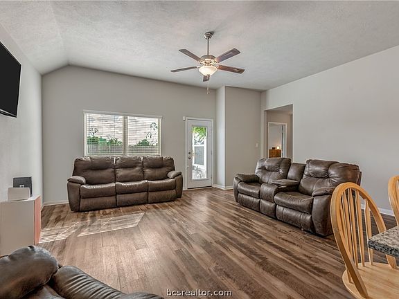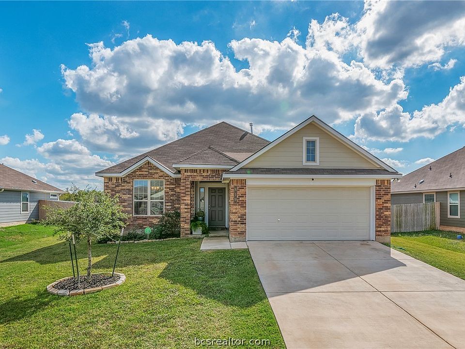 Charming and roomy this home has 3/2/2 located in Navasota in the Heritage Meadows subdivision with 1634 sq ft. The kitchen and living is open concept with a separate dining room. The kitchen is complete with granite countertops, stainless steel appliances including a refrigerator, ample dark cabinets and eating bar. Good size dining area has a windows that lets in the natural light. It is a split bedroom plan, spacious master suite with ensuite bath which has a dual sinks, soaking tub and separate shower. There is a linen closet in the hall bath and two other storage closet off the bedrooms. The large backyard backs up to a privately owned cattle pasture.