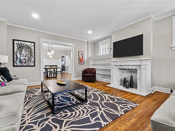 A perfect blend of modern updates & classic character, this delightful abode, in Highland Park's heart, is a homebuyer’s dream! Upon arrival, you’ll be welcomed by the shade of a picturesque dogwood tree, leading to a spacious & private front porch, ideal for relaxing or entertaining. Step inside to the charming, sunlit foyer, leading to a sprawling, open first floor, tastefully renovated with sleek paint & crown moulding throughout; meticulously refinished hardwood floors; capacious living & dining rooms with lovingly preserved deco marble fireplace, original built-ins & wainscoting! Impressive new kitchen with shining white quartz countertops & eat-in island with seating; gold & marble ceramic backsplash; high-end stainless appliances including double oven & 4-door fridge. Upstairs you’ll find 3 large bedrooms & 2 full baths; oversized master with extra closet space. Custom window treatments; 1-car garage; private covered back deck! New HVAC throughout, new windows; updated electric!