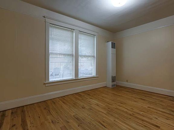 This spacious One Bedroom flat offers wood floors and clawfoot tub. Black and white tile accent the open kitchen and offers a convenient and fantastic place to call home. First month free rent with signed year lease!