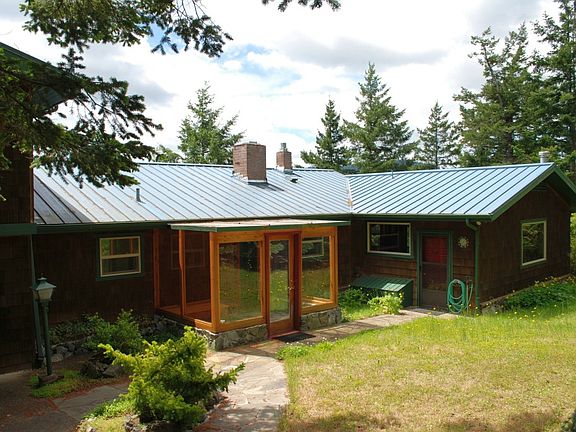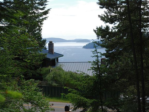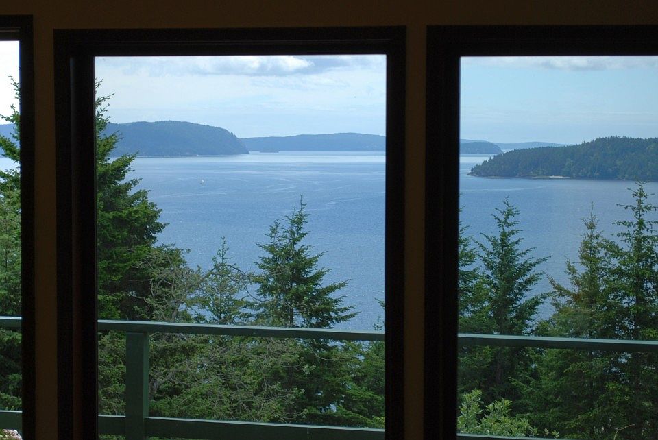 Enjoy stunning water views from this renovated home close to Rosario Resort on .69 acres. A wall of windows in the great room opens to vistas of the sea. Two master suites; upper one has a view balcony and two bathrooms, lower one has a separate entrance, a view deck, and hot tub. Features a kitchen with two sinks adjacent to big family room, brick fireplace, shop area with lots of storage, automatic generator, and private fenced setting, southerly exposure, nearby is trail to Cascade Lake.