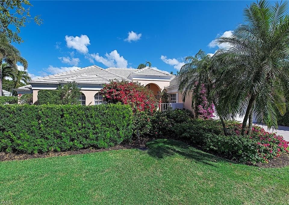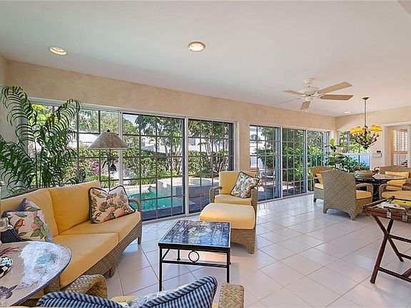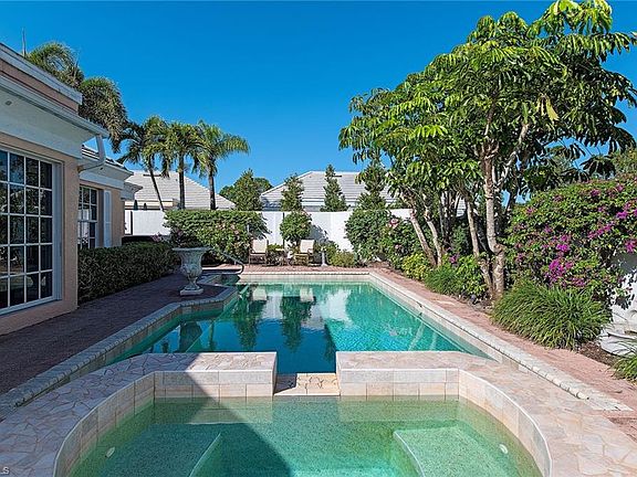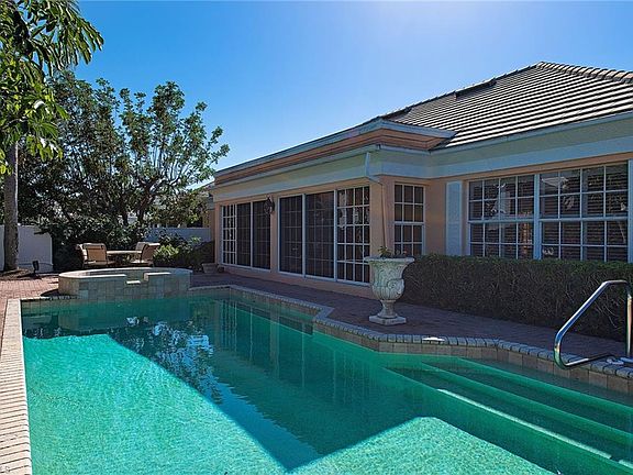 The charm of Beauville at its best! You will feel like you are in Bermuda in this beautiful setting. This one-story villa is 3 bedrooms plus den and features 2,554 square feet under air on a double lot. Very private setting with a privacy wall enclosing the pool and spa. Light and airy with an open floor plan. The kitchen was recently updated with quartz countertops and stainless appliances. Roof, 2010. AC 2017. HWH 2021. Furnished. Enjoy all that Pelican Bay has to offer almost 3 miles of private beach, 2 beach restaurants (not open at the moment due to Hurricane Ian), a state-of-the-art fitness center and wellness studio, two tennis centers, kayaking, canoeing, bike paths and berm. Close to Mercato and not far from Old Naples with its many restaurants.