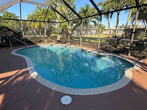 Screened-in poolSpacious lanaiStylish comfortable furnishingsLush tropical landscapingBright and open layout