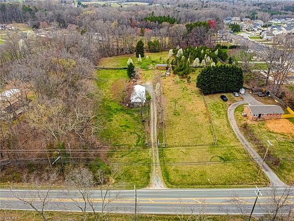 Opportunity to live in the city with a country feel. Gated entrance to 4.85 acres - fully fenced - with 3 different dog yards. A real "Dog Heaven". Also perfect for fruit orchards, vegetable gardens & chickens. Serious 6' no-climb welded wire fence on 2 yards and 7' chain link with lean in on 3rd yard. (see Improvement List) Owner added new roof 2019, new flooring 2022, new 20 X 25 screened porch, new gas range & kit backsplash 2022. , 12 X 28 Dutch barn (2019) wired & plumbed with 30x20 doggy pad attached. Building allows access to all three yards. Smaller storage shed added 2022. Beautiful red maples will soon be out, lining the driveway. Property is registered as a Monarch Waystation. Rear wooded areas offer walking trails. Additional Pole Barn for equipment, trailers, boat storage. Washer/Dryer convey. Easy commute to Winstson-Salem, Kernersville & Greensboro.