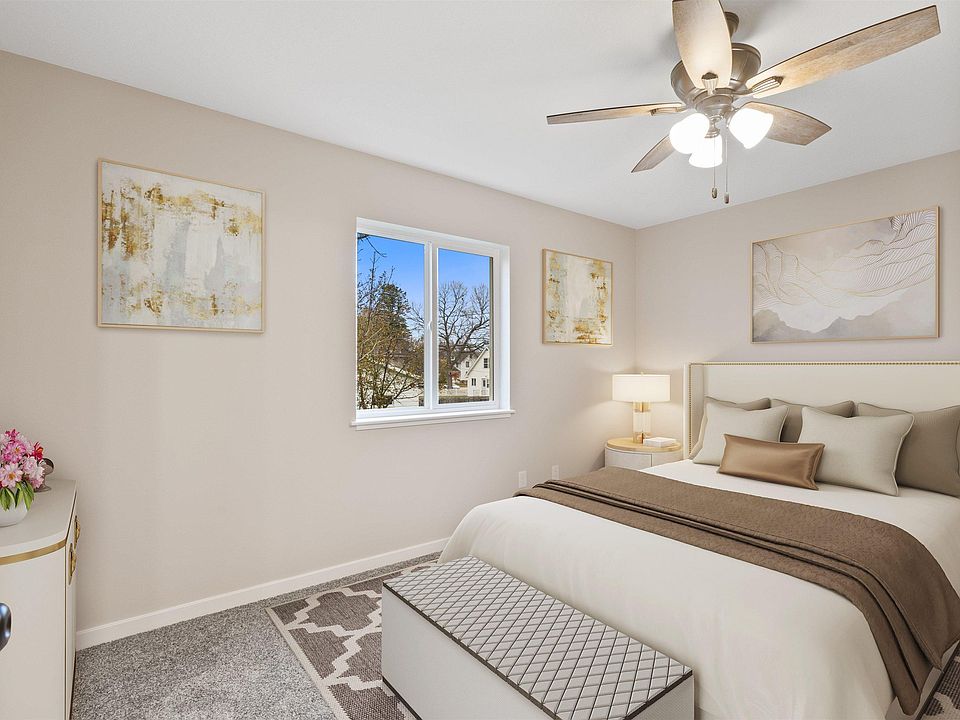 Fantastic new construction by Carolan Builders. This thoughtfully designed home features a luxurious primary bedroom on the main floor, complete with a large walk-in closet and a beautifully appointed en-suite bathroom. The second bedroom also boasts generous closet space, ensuring ample storage for all your needs.The spacious living room contains a modern electric fireplace that adds warmth and charm. Venture to the lower level, where you'll find two additional bedrooms, perfect for family, guests, or a home office. Step outside to a large shaded covered deck, ideal for entertaining or simply relaxing in your fully sodded yard. With a two-stall garage, you’ll have ample space for your vehicles and storage. This home comes equipped with essential appliances, including a refrigerator, stove, dishwasher, and microwave, ensuring you have everything you need from day one. This is a wonderful opportunity to own a brand new home. Don’t miss out—schedule your showing today!