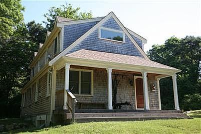 Private setting. Beautifully appointed upscale newly renovated Cape with a delightful front porch located on a knoll at the end of a long driveway in beautiful West Falmouth. Features include Brazillian Cherry floors throughout the first level, a custom Chef's kitchen with a six burner gas cooktop, a large granite breakfast bar open to the spacious Living/Dining Room, a decorated furniture style vanity in the upstairs bath, and central AC. Property is being sold as is and there are some finishing touches needed both inside and ouside. There is a $200 fee annually due for the driveway easement. Buyers should verify all tax, dimensional, and boundary information.