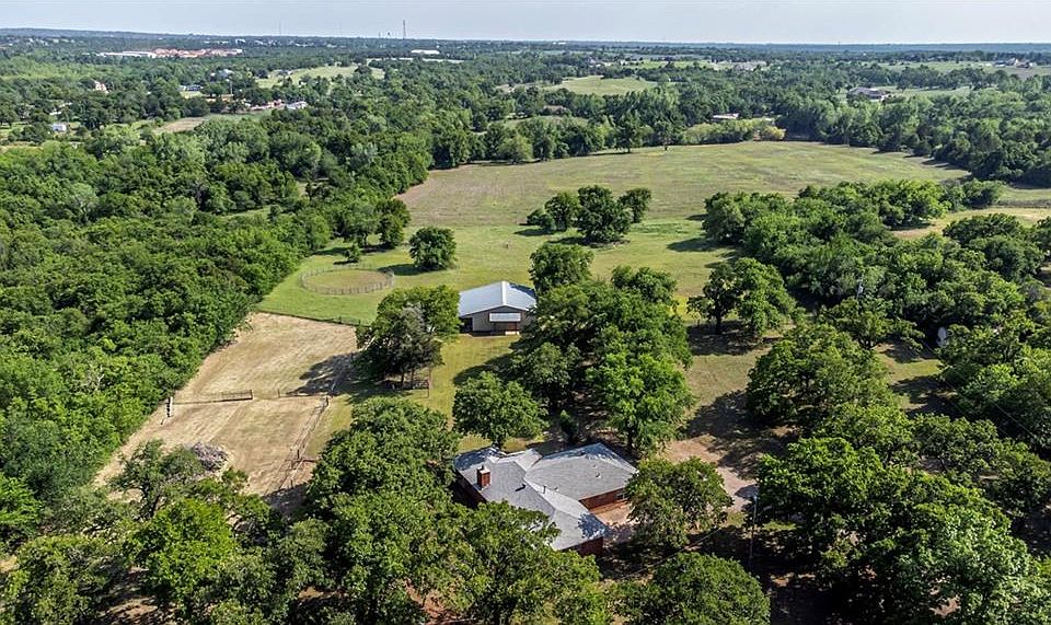 HORSES & LIVESTOCK ALLOWED! Incredible property nestled on 5.09 acs, great views of the countryside & is conveniently located just a few blocks from the Guthrie Lake. Large ageless mature trees line the driveway to this picture-perfect setting. Large living area w/a brick fireplace & is hosted by natural light from the wall of windows overlooking the green pastures. Simply relaxing-this 3 bed, 2 bath home with 1615 sq ft. The kitchen has updated appliances & a breakfast bar , beautiful granite counters. The dining and kitchen ceiling has a remarkable inset of embossed tin ceiling tiles with cedar framing. Separate dining area is open to the living area. The master bed has 2 closets & its own private remodeled bath. The 2 guest beds have ample closets & share the remodeled hall bath. The property is fenced & cross fenced. The horse barn is a horseman's dream. It is 2500 sq ft with a knockout tack room. The barn has custom made gates, concrete floor & electric. 3 oversized separate stalls, along w/a tack room & feed storage. There are also 2 small lean twos on the grounds and property is crossed fence with 6 paddocks. Great covered porch is cozy & inviting overlooking the property. Home has well /septic.