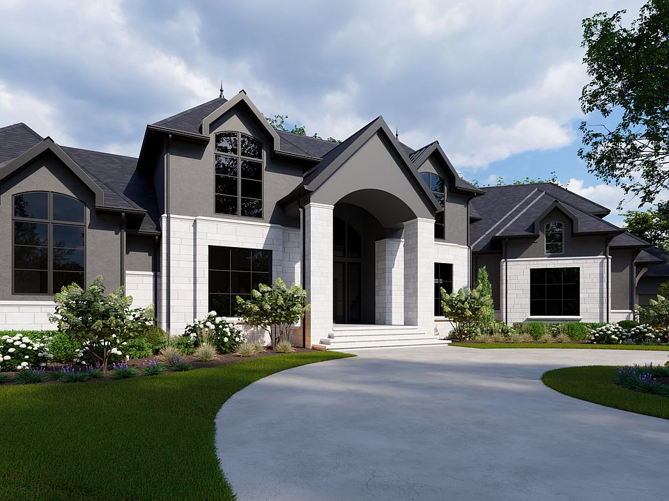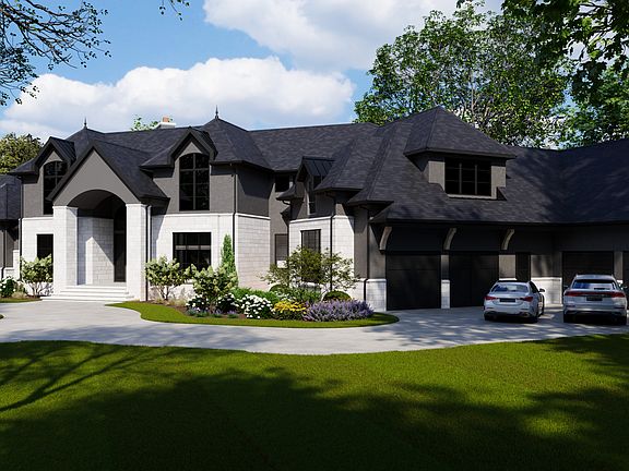 Proposed new construction by William Custom Homes and designed by Goldberg Design Group on Indianapolis' north side near Meridian Hills and Park Tudor. This three-level custom residence blends timeless architecture with modern performance spaces, highlighted by an impressive indoor sport court with a ceiling height over twenty feet. With approximately 7,700 finished square feet plus unfinished space for future customization, the home is thoughtfully designed for both entertaining and everyday comfort. The main level features a grand two-story foyer, open living and dining areas, a chef's kitchen with oversized island and walk-in pantry, private office, mudroom with lockers, and a primary suite with dual walk-in closets and a spa-inspired bath. Covered porches extend the living space outdoors, offering ideal flow for gatherings or quiet relaxation. The second floor provides three spacious bedrooms, each with ensuite bath access, and a versatile loft-style lounge. The finished lower level is a destination of its own with a family and media room, wet bar, fifth bedroom suite, exercise area, and golf simulator space. Mechanical and storage areas are strategically placed, and the plan includes an optional elevator for convenience. Exterior details feature a limestone and EIFS facade with metal-accented rooflines, creating a commanding presence on one of the city's most desirable northside homesites. The property can accommodate an optional pool, hot tub, and courtyard patio. Located minutes from Meridian Hills Country Club and top private schools, 8190 Jordan Lane presents a rare opportunity to build a fully customizable luxury estate in a premier Indianapolis setting.