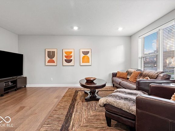 Step into modern luxury in the heart of walkable downtown Fishers-one of the fastest-growing, most sought-after communities in the country. Built in 2020 and meticulously maintained, this stunning townhome offers the lifestyle everyone is talking about. Just steps from vibrant restaurants, boutique shops, the Nickel Plate Trail, and all the energy of a booming, dynamic downtown, this is truly urban-suburban living at its finest. From the moment you enter, the soaring two-story foyer and incredible natural light set the tone. Expansive windows frame every level, creating a bright, uplifting atmosphere throughout. The lower-level bonus space is a dream-perfect as a media room, game space, gym, or the ultimate work-from-home office. On the main level, enjoy a flexible living/dining area that adapts effortlessly to your lifestyle. The open great room is the heart of the home, centered around a striking gas fireplace and seamless flow into the chef-inspired kitchen. Quartz island, sleek cabinetry, stainless appliances, and direct access to your private deck overlooking a peaceful wooded backdrop-an ideal space for morning coffee or evening grilling. Upstairs, the vaulted primary suite feels like a retreat with oversized windows, a massive tile walk-in shower, dual sinks, private water closet, and a generous walk-in closet. Two additional spacious bedrooms and a full bath offer versatility for guests, hobbies, or another office. A convenient upper-level laundry room adds to the ease of everyday living. The finished garage with newly sealed floors is the cherry on top-truly move-in ready from day one. If you're looking for modern design, unbeatable walkability, and an elevated lifestyle in one of Indy's most thriving communities, this townhome has it all. Welcome home.