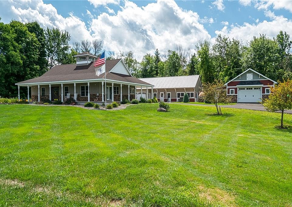 NOW IS YOUR OPPORTUNITY TO OWN YOUR OWN SLICE OF HEAVEN! NESTLED ON OVER 3.5 ACRES THIS CUSTOM BUILDERS HOME HAS EVERYTHING & MORE! AS YOU ENTER THE BREATHTAKING ONE LEVEL MAIN HOUSE W/WRAP AROUND PORCH, YOU'LL FIRST NOTICE THE SPRAWLING FLOOR PLAN W/SOARING CEILINGS, THE LIGHT PENTRATING THROUGH THE CUPOLA, THE LARGE KITCHEN DESIGNED FOR THE COOK IN MIND W/COMMERCIAL GRADE APPLIANCES, SOLID SURFACE COUNTERS, LARGE ISLAND WITH VEGETABLE SINK, FAMILY ROOM WITH FLOOR TO CEILING STONE SURROUND GAS FIREPLACE, 1ST FLOOR LAUNDRY & RADIANT TILE FLOORS THROUGHOUT. MASTERSUITE HAS CEDAR CLOSET AND GAS FIREPLACE. THE 3 CAR GARAGE HAS FULL WALK-UP STORAGE AND WORK SHOP AREA. GUEST QUARTERS OFFERS AN ADIRONDACK FEEL W/COZY 1 BEDROOM, 1 BATH WITH WET BAR AREA PERFECT FOR ENTERTAINING. THE CARRIAGE HOUSE HAS HIGH CEILINGS AND AN ADDITONAL 2 BAY GARAGE WITH PORCH. THE EXTERIOR HAS STAMPCRETE PATIOS EXTENDING TO EACH BUILDING. YOU CAN RELAX ON YOUR PORCHES & PATIOS AND ENJOY YOUR CUSTOM BUILT STONE-FIRED PIZZA OVEN DURING THE DAY OR AT NIGHT AS THE PROPERTY BECOMES ILLUMINATED AT DUSK. BARN ON THE PROPERTY COMES WITH THE SALE. OPPORTUNITY FOR THE LAND TO BE DIVIDED INTO BUILING LOTS.