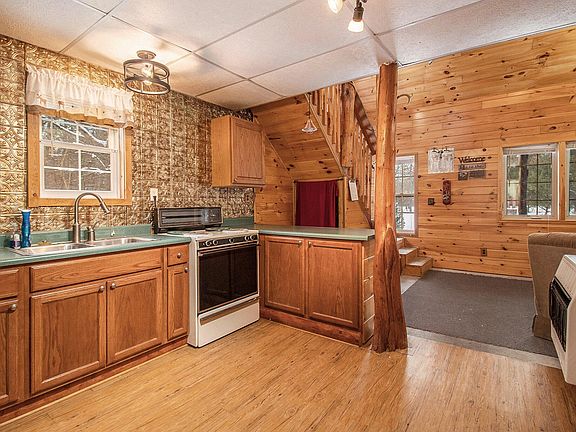 Open loft upstairsRustic and woodsy outdoorsWrapped in mature treesSalt-box style homeComfortable and updated indoorsMain floor bedroomFull-sized kitchen