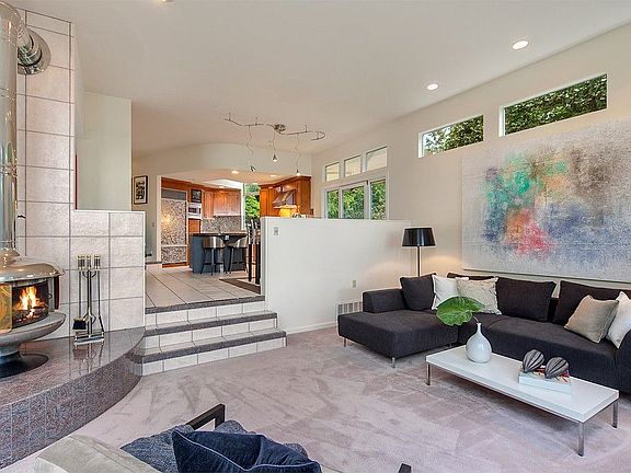 Two for One! Ideal for a car aficionado or as a home with additional investment income. Two houses with Lake Washington views on a private 1.4 acre lot. The main house is 4 BRs with a great room, remodeled kitchen and master suite. A large deck and gazebo connects to the legal ADU which has wonderful spaces and finishes. 7 total covered parking spaces with a lift and work area for the serious car collector. A short walk to schools. Lots to see!