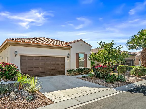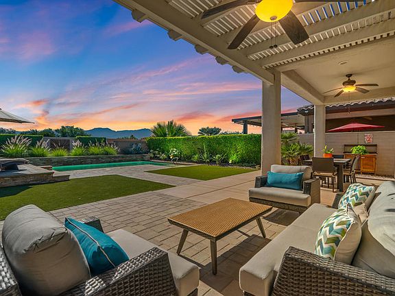 EXCEPTIONAL MODERN ELEGANCE AND REFINED LUXURY in the resort style community of Sun City Shadow Hills! Homes of this caliber rarely come onto the market! Offered TURNKEY FURNISHED, this upscale residence showcases contemporary design, fine finishes and an open floor plan perfect for desert living and effortless entertaining. Enter from a beautifully landscaped walkway into a bright and welcoming dining area that flows gracefully into the chef's kitchen, designed with upgraded cabinetry, Corian countertops, breakfast bar, gas stove and built in microwave. The open living concept anchors the space offering abundant natural light, modern recessed lighting and a seamless connection to the outdoor patio, creating a true indoor/outdoor lifestyle! Conveniently located off the kitchen is the laundry room featuring a utility sink, ample cabinetry and direct access to the garage for everyday ease. The Primary Suite is a serene retreat, offering both comfort and sophistication. Wake up to gentle morning light and views of your sparkling pool, offering a gentle ease into your daily routine The spa inspired ensuite features dual vanities, a glass enclosed shower and a spacious walk in closet, designed for ultimate functionality. Every finish evokes a sense of calm elegance, from the neutral palette to the soft textures and refined details. The Guest Room/Office offers exceptional versatility workspace. Outfitted with a custom Murphy Bed that folds away to reveal a built in desk, easily transformed from a comfortable guest room to a productive home office optimizing dual purpose living! Step outside to your PRIVATE RESORT STYLE OASIS situated on an OVERSIZED PREMIUM LOT capturing breathtaking mountain views. Enjoy a fabulous heated saltwater pool and spa, surrounded by paver decking, a tanning ledge and multiple areas for lounging and entertaining. A large covered patio with a pergola provides shade and comfort for alfresco dining, while the professional landscaping with Ficus greenbelts ensues both beauty and privacy EVERY surface and detail from doors and fixtures to lighting and hardware reflects the quality craftmanship and a commitment to luxurious living! CELEBRATE LIFE in prestigious 55+ Sun City Shadow Hills, where residents enjoy two golf courses, clubhouses, fitness centers, pools, tennis, pickleball courts and a whole calendar of clubs and social events. TURNKEY, STYLISH AND IMPECCABLY MAINTAINTED... THIS IS IT!