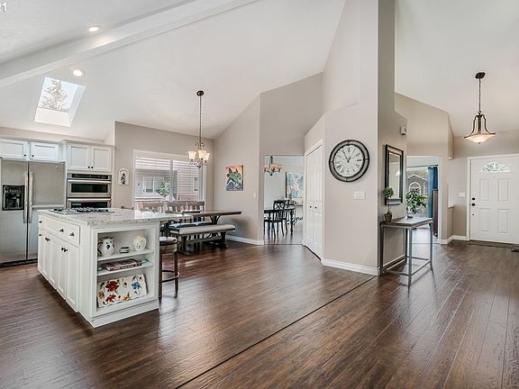Fabulous Cooper Mountain location home featuring 1 of a kind open floor plan w/exceptional high ceilings, gourmet kitchen w/granite slab counters, stainless steel appliances, lg pantry, eating bar & eating area, grand formal dining & living, family room w/vaulted ceilings & gas fireplace. Window coverings T/O. Spacious spa-like master suite w/remodeled bathroom & coved ceilings, crown molding w/private slider leading to gardeners delight w/new custom patio, gas BBQ line. Newer Presidential roof.