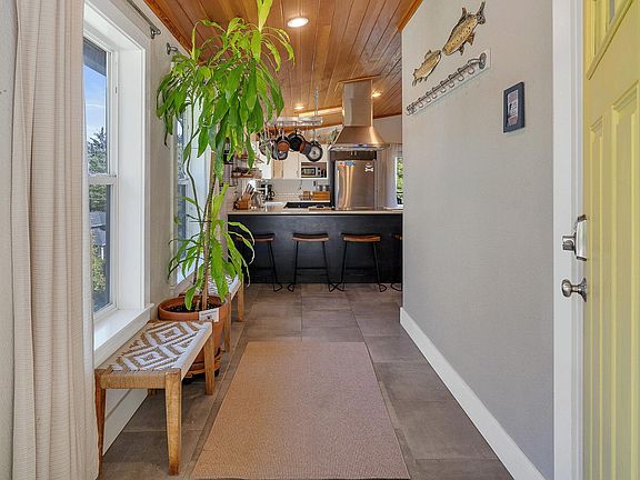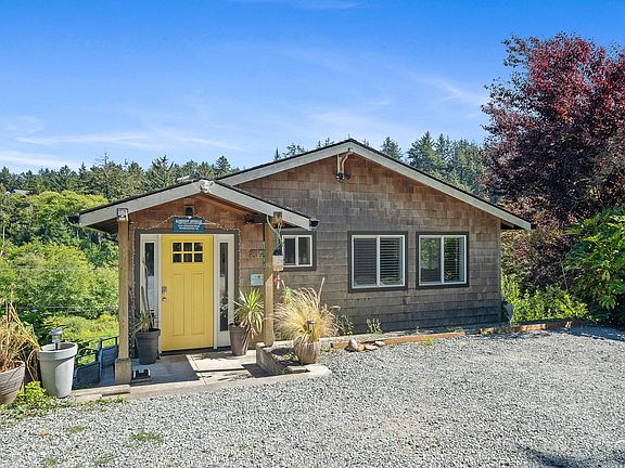 Perched on a bluff in the Neahkahnie neighborhood, this fully furnished home offers tree views & is about 1/3 of a mile from beach access. A transferable short term rental license in Tillamook County adds investment appeal. The top level features a spacious kitchen, dining area, a cozy sitting nook next to the stone fireplace, perfect for intimate conversations, a bedroom & a bathroom. Downstairs, you'll find a comfortable living room, two additional bedrooms, & bathroom. A stunning hand hewn wood spiral staircase connects the two levels and serves as a true centerpiece. Enjoy the outdoors year round with two oversized covered decks, ideal for relaxing among the coastal trees & fresh sea air. Currently a busy rental, viewings are by appointment only. Available: 8/10, 8/15, 8/16, 8/23-25.