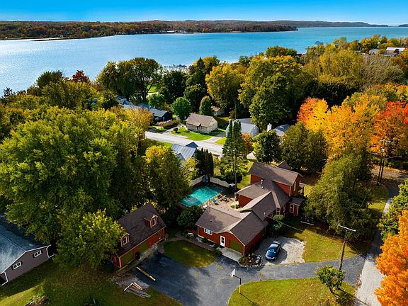 Step into timeless charm with this beautifully preserved Victorian in the heart of Onekama. Set on nearly an acre, this 1880 home radiates character with original wood trim, high ceilings, and the inviting warmth of a bygone era—balanced by modern updates including new siding, roof, deck, and doors, with new windows on order. Currently used as a bed and breakfast, the home comes fully furnished and features 5 bedrooms, 3 baths, and nearly 2,900 square feet of living space. A self-contained 1-bed, 1-bath apartment offers flexibility for a caretaker, guest suite, or rental opportunity. Enjoy a resort-style backyard with an in-ground pool, dry sauna located in the 2-car garage, and serene views of Portage Lake from the porch. The property’s location can’t be beat—walkable to the public beach and village shops, and just a short drive to the Lake Michigan shoreline, Arcadia Dunes, and Manistee. Whether you’re dreaming of continuing its use as a B&B, creating a family retreat, or simply embracing Victorian charm in a lakeside village, this property is truly one of a kind.