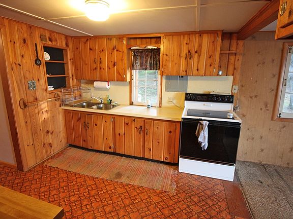 Unique Property! You will enjoy fifty six feet of excellent sandy shoreline and level elevation on beautiful South Long Lake. This rustic cottage is on the waters edge and was built with family time in mind. Its cozy wood accents of knotty Pine tongue and grove will remind you of days gone by. The open concept includes; a living room and kitchen, two bedrooms, one bathroom, a large patio door to a big lakeside deck for additional outdoor entertainment. There is Log siding, a twenty by twenty six two stall garage for added lake toy storage, a nice deep lot and gorgeous mature Norway Pine trees studding the lot.