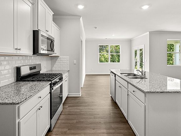 Aria plan 3 bed/2 bath. Ranch plan. Cover porch.Eat-in kitchen Large kitchen island, eat in kitchen with view to family room Wood floors in common areas on the main.