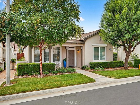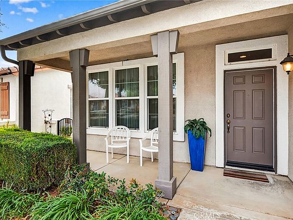 Charming home located in the 55+ fully gated, 24/7 Four Seasons community, surrounded by scenic hills and the Hemet Golf Course. Ideally situated within walking distance to the lodge and all its resort style amenities. This two bedroom, two bath home also features an office/den/craft room and boasts a spacious open floor plan with carpet and wood flooring throughout. The bright, white kitchen offers an island with bar seating, white appliances, and ample cabinet space. A wall of windows fills the living areas with natural light, while French doors open to a beautifully landscaped, covered patio, perfect for relaxing or entertaining. Additional highlights include a large masted bedroom with attached bathroom, an inside laundry room and a roomy 2-car garage. Enjoy a vibrant lifestyle with endless activities for the active senior, including tennis, pickleball, swimming pool, and spa. The community also features a beauty salon, fitness center, and a lodge offering a bistro, movie theater, computer room, craft room, billiards, ballroom, and so much more