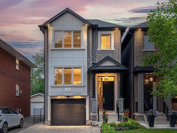 Thoughtfully upgraded and built in 2017, this home offers over 2,700 sqft of total living space, including 3 bedrooms and 4 bathrooms. The kitchen and dining area impress with 12' ceilings and a new extended-height patio door that brings in exceptional natural light. The all-white kitchen is fresh and functional, featuring quartz counters, Bertazzoni appliances with a gas cooktop, and a centre island. Upgraded full-height uppers and extended cabinetry provide generous pantry space and a dedicated coffee bar. The custom floor-to-ceiling wine wall and bar millwork, paired with the fireplace, elevate the space. The backyard was designed for enjoyment with low maintenance in mind. Walk out to a nearly 200 sqft deck with a gas line, Ipe wood side walls, glass railings, and a full-length automatic awning so you can make the most of the space rain or shine. Aggregate concrete finishes the lower area, complemented by privacy trees that create a lush green backdrop. The showstopper is a wood-burning pizza oven, custom-built and imported from Portugal. Upstairs, you will find three generously sized bedrooms, including the primary suite with a walk-in closet, fireplace, and a spa-like 5-piece ensuite. Wrought iron staircase railings and feature wall with concealed storage add some flair and practicality. The finished basement has a separate side entrance, a full washroom, and builder rough-ins for a kitchen or wet bar. Use the space to suit your needs, ideal as a family room, gym, or separate suite. Convenient indoor access to the heated garage, complete with newly epoxy-coated floors, and an aggregate concrete driveway. Live in the heart of New Toronto, a community on the rise with vibrant cafes, craft breweries, and local shops popping up all around. Enjoy the lake, trails, and parks just minutes from your door, with quick access to Mimico GO, the TTC, and the Gardiner.