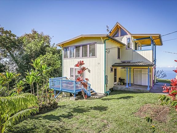 Enjoy Hawaii life in this charming home located on 2.13 acres. For over 100 years this area has supported the growth of coffee and has numerous edible plants and fruit trees such has Strawberry Guava, Pomelo, Mamaki Tea, Avocado and White Pineapple to name just a few. From multiple lanai's you will enjoy ocean and shoreline views, and others offer the solitude of the tropical forest. The Koi pond, yoga hut and the meditation platform add unique ambiance to the outdoor spaces. This property must be seen to appreciate. The main home offers 2 bedrooms and 2.5 bathrooms, and 2 office spaces. and has an additional small un-permitted bungalow and small workshop.