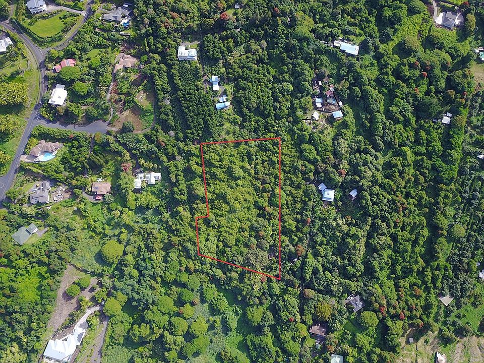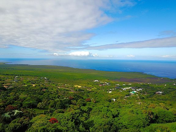 This is an excellent opportunity to purchase over 5 acres of fee-simple land in this area. South Kona is famous for growing some of the best coffee in the world, and this beautiful property was previously used as a coffee farm. There are many mature fruit trees on it, including coffee, mango, avocado, banana, sour sop, lychee and guava. This lush acreage reminds one of Old Hawai'i, and has some of the best and fertile soil for growing. There are three structures currently on the property; one which used to be the main coffee shack which is potentially repairable; another is a tear-down and the third has been stripped down to the sub-floor. Please do not enter any of the structures. Buyer will need to put in a water catchment system. Sweeping ocean views can be had, once vegetation has been cleared. Property is being sold As Is.