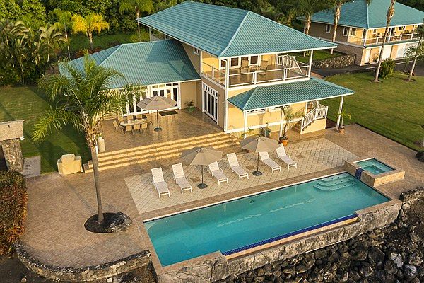 HALE MOANA! GATED 5 ACRE LUXURY ESTATE! PANAROMIC KEALAKEKUA BAY AND WHITE WATER OCEAN VIEWS! 2 EXQUISITE HOMES! A SUCCESSFUL VACATION RENTAL! Step into this beautiful estate property and feel like you are in your own magical resort with awe-inspiring views of the famous and historic Kealakekua Bay! These two luxury residences are perched up perfectly on the property to take in some of the most amazing views you will ever see, and only a few minutes to the water for fun and activity! Each home is beautifully appointed with fine finishes, stunning wood flooring, porcelain Italian tile, 10' plus ceilings, plantation island blinds, gas gourmet kitchens, central air conditioning and so much more! Plenty of room for boat parking! The master suites and bathrooms are lovely and have large lanais to capture the amazing views, as all the bedrooms and bathrooms are well appointed with their own unique beautiful features! Enjoy recreation and fun in the large billiard room just off the pool area or swim laps in the enormous infinity edge pool with a waterfall spa! Play some volleyball on the sand volleyball court below or just relax poolside and enjoy your beautiful surroundings. The grounds are a tropical paradise with green lawns and coconut palms everywhere, a magical estate property ready to move in as a primary residence, second home residence or use as a successful vacation rental! Come see this unique and magical estate residence for yourself and enjoy your own luxurious and peaceful paradise!