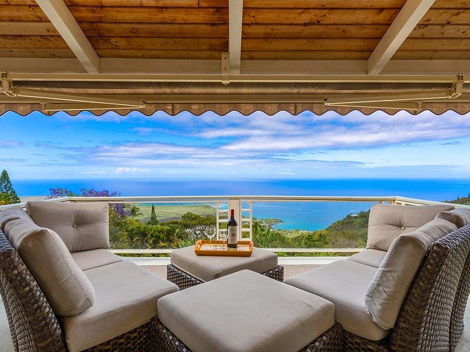 Located in the heart of Kona coffee country, this gated and private one-acre coffee estate offers just enough land and house to enjoy a rural lifestyle without being overburdened by too much work. With an expansive and stellar view of the Pacific Ocean and Kealakekua Bay, you won't want to leave the comfort of your lanai. On a clear day, you can see all the way to Miloli'i!There are two levels of living space. Upper level includes living room, dining room, kitchen, laundry, guest bath, master bedroom & master bath. Lower level includes family room, kitchenette, two bedrooms, hallway bath and an ensuite with bedroom & bath. Both levels feature full-length lanais on the ocean side.Other house features include:- Vaulted, exposed beam ceilings- Outdoor kitchen with built-in grill, sink and refrigerator on upper lanai- Natural daylight throughout via large windows- Sliding doors to lanais from each bedroom- Solid Brazilian cherry flooring, porcelain tile and carpet- Lower level remodeled in 2016-17- Outdoor hot tub- Solar hot waterLand features include:- Approx. 550 coffee trees- Other trees: banana, lychee, coconut palms, lemon, orange, ulu (breadfruit), avocado and jaboticaba- Fully landscaped and accessible via path- Water provided to all areas via piped system- Several rock walls- Dog run, plus dog & cat doors- Wood storage shed with water & electricity- Plastic shed with fold-down drying racksEnjoy estate living in the heart of Captain Cook...less than one-mile from grocery & hardware stores and restaurants...and just 25 minutes to downtown Kailua Kona. Approximate elevation: 1,275 feet.Note: Bed & bath counts and square footage do not match County of Hawaii records.