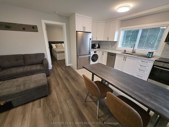 Never lived in, new everything, bright, fully furnished, 1-bedrrom apartment with high end luxury finishes. Private entrance. 3GB Fiber Wifi included. Air Conditioner. Stainless steel appliances including Dishwasher and Washer/Dryer Combo. Sun filled fully equipped kitchen with all dishes and cookware, including a kettle, toaster, etc. Elegant Quartz countertops & backsplash with large undermount sink. King bed with never used sheets/linens and huge under bed storage drawers. Large closet. Wall mounted 4k smart TV with Netflix & Prime included, HDMI in your devices. Parking available if required. Located north of Coldwater in a beautiful family friendly neighbourhood. Perfect location, just steps from downtown, 600 metres from Memorial Hospital, walking distance to Couchiching Beach. Main transit line on Coldwater makes getting around quick & easy. Why fully furnish an apartment yourself when you can move in here and save 10s of thousands. If you're looking for simplicity, high end comfort in a great location, this could be the place for you. Host / owner has vast experience working with Professional, Corporate, and Senior clients. The building has 6 apartments in total which could be packaged together for a client looking for multiple units. Please note appliances will be maintained for the entire tenancy. All other furnishings will not be replaced as they age out of their useful life. Please ask for specific details. Rent plus electric plus parking if needed.