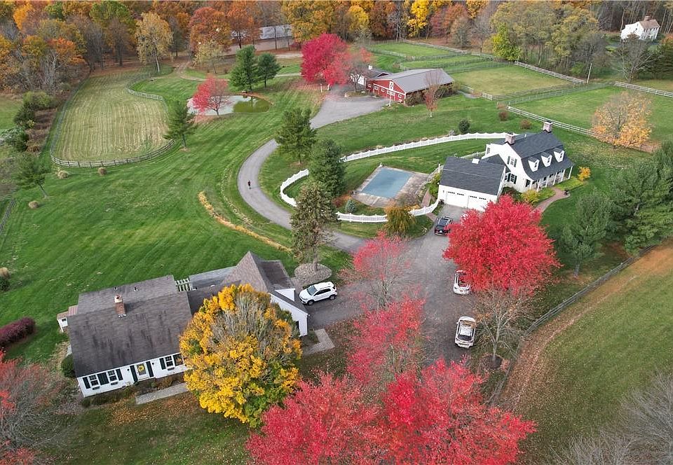 ONE OF A KIND ESTATE! This property is everything you have ever hoped for-2 homes, 12 stall horse barn, 3 bay garage, 5 bay garage, indoor arena, pond, and paddocks! Main house was built to feel like an old farmhouse with hand hewn beams, 12" floors, big fireplaces. Eat in kitchen has a 6 burner Garland stove huge gas FP & bay window with views of the yard, & valley. Large living has room for all w/another FP and a step down into the cozy bright sunroom (more views!). Master bedroom has a gas FP and double closets. Add'l bedroom & large dressing room also on the 2nd floor. A second staircase brings you to the 3rd bedroom, complete with sitting room, could be for inlaws/nanny. 3 bay garage and 12 stall horse barn with office, bathroom, & tack room are just a short walk from the main house. Pass the pond & you will find the 60x160 indoor arena w/electric & new metal roof. Beyond that is the huge 40x70 5 bay garage w/RV storage & electric. 2nd home is a 3 bedroom, 2 bath 2147 sqft home. Additional Information: Amenities:Dressing Area,Guest Quarters,Stall Shower,Storage,HeatingFuel:Oil Above Ground,ParkingFeatures:2 Car Attached,