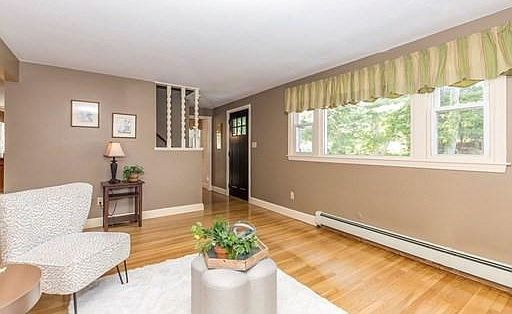 This meticulously maintained Gambrel home offers many updates incl two updated baths. Main level has a spacious living room with a picture window and hardwood floors. Enjoy an open area updated cherry cabinet kitchen with ceramic tile floor, granite, stainless steel appliances and large peninsula breakfast bar for casual dining plus a full dining area with hard wood floors. Lots to love with the tranquil view of the private manicured and landscaped level private back yard through the large picture window and natural light of the family room with a pellet stove and A/C. Main level also offers an office/possible 4th bedroom and a 1st floor laundry. Upper level has a king sized front to back master bedroom with large closet and 2 additional oversized bedrooms. Lower level is partially finished with a playroom and lots of storage area and future living area, if needed. NEW ROOF & HEATING STSTEM,HW tank and 100 amp electric. NEW Septic system 5/21.Carport & shed. Easy access to bus,train
