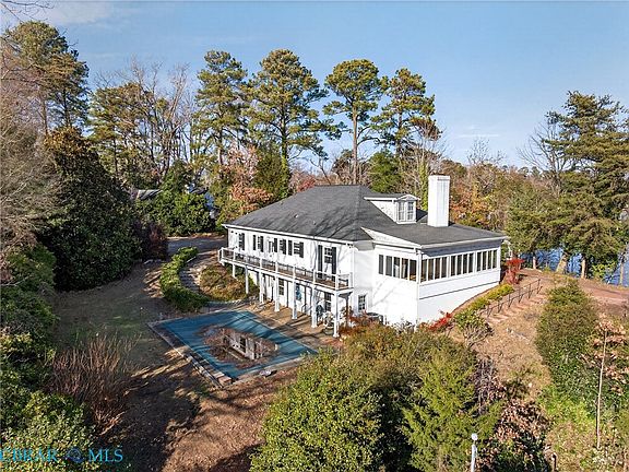 Rare waterfront opportunity on Carter’s Creek with commanding 250° views and direct sightlines to The Tides Inn. Privately situated at the end of a quiet lane, this all-brick home rests on 0.69 acres with deep water, a point location, and exceptional privacy. Incredibly well built and thoughtfully laid out to enjoy water views from most rooms in the home, the main level features generous living and entertaining spaces, including a formal dining room, oversized living room, and a sun-drenched creek room that captures stunning views. Just outside, a brick terrace extends the living space outdoors—perfect for morning coffee or an evening cocktail enjoying sunsets overlooking the point. Hardwood floors run throughout, and a quiet office with bay window and built-ins offers a dedicated workspace. The kitchen and baths are in original but well-maintained condition, offering the next owner a chance to reimagine the space. Upstairs, a walk-up attic presents excellent potential for expansion—ideal for adding bedrooms, a bunk room, or a guest suite. The walkout basement features a spacious rec room with wet bar that opens to the lower terrace and pool area, creating seamless indoor-outdoor flow. The roof and HVAC have both been replaced within the past five years. Additional features include a whole house generator, rip rap and bulkhead in good condition, and a dock ready for new decking. Solidly built and beautifully positioned, this property offers a rare blend of views, privacy, and potential. Vision required—but the reward will be extraordinary.