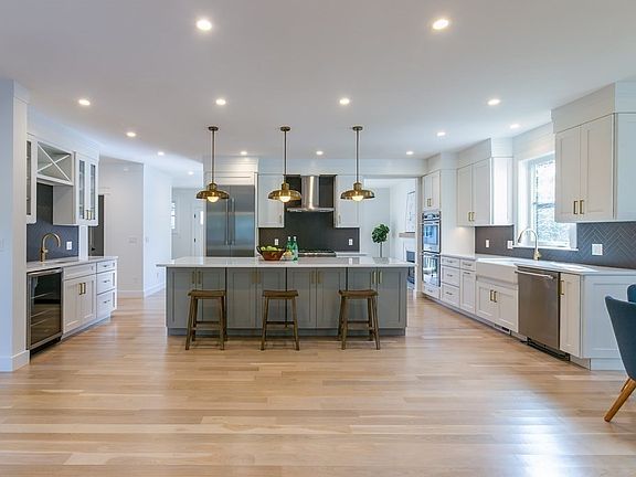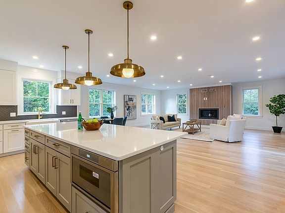 PRIME LOCATION, NEW CONSTRUCTION. This exquisite residence is situated in a highly desirable neighborhood in close proximity to the town center. Its welcoming expansive farmer's porch is adorned with dual sets of sliders. Cozy up on chilly nights with two fireplaces, including a stylish linear unit. Primary Suite boasts a walk-in closet and lavishly appointed designer bath with soaking tub. Two en-suite bedroom, one conveniently located on the main floor. WALK OUT lower level features a full bath, mudroom, a fitness area and a generous bonus room with high top seating and it opens up to a beautifully level backyard and patio, offering the perfect setting for outdoor enjoyment. Wired for EV charger. Open concept chef's kitchen boasts a spacious 10 ft island and walk in pantry. Wet bar is easily accessible from the great room & kitchen. This home with its oversized outdoor living, and open floor plan is taylor made for entertaining, just in time for the holidays.