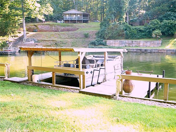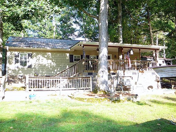 Home has a 12x24 covered deck that overlooks the lake. It's probably 50' to the shoreline from deck and is a Nice Flat Walk. It has deep water and a good view. Dock is covered and also a private boat ramp. Home has shake style siding along with a metal roof. Inside is gorgeous and is in Move-In-Condition.