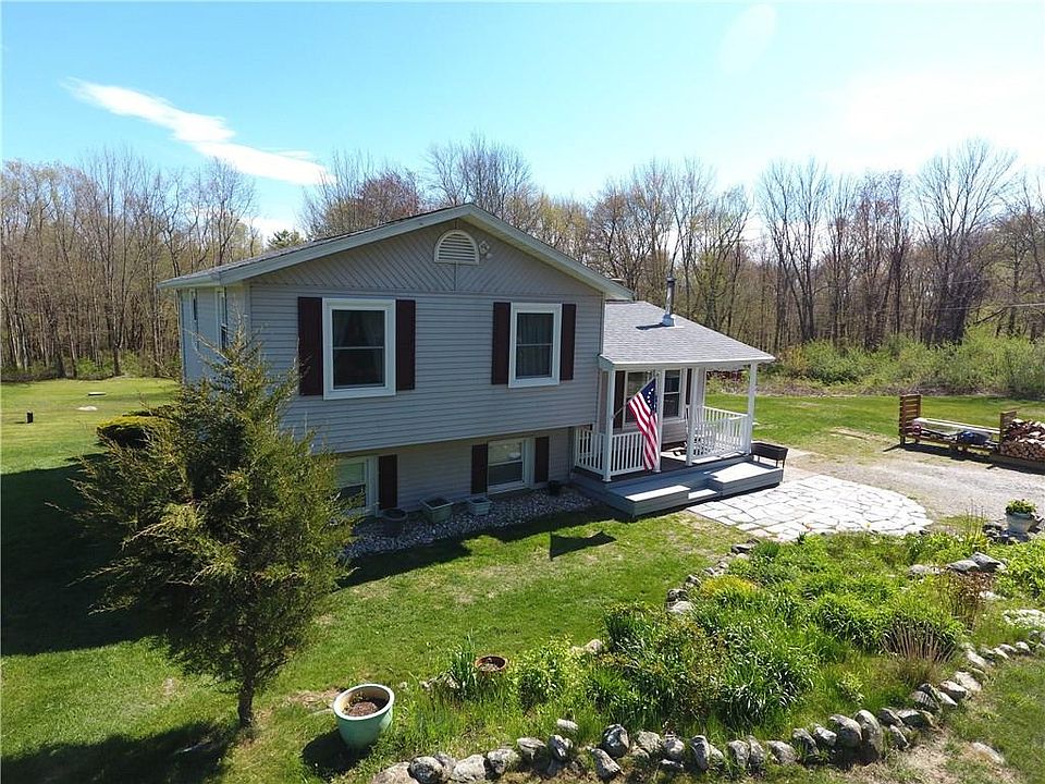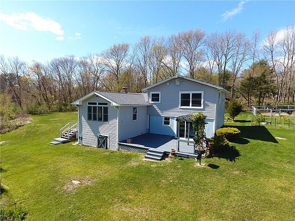Get away from it all! Lovely split level home with open kitchen concept. Breakfast bar, nook with wood stove and dining area with vaulted ceiling overlooking a perfect farm and picturesque country setting. 5 acres of level land complete with a large vegetable garden and garden shed. Well established perennial gardens and raspberry patches. A small barn serves as a hobby farm for 2 goats and 10 chickens. Plenty of room to expand to other livestock or none at all. A quaint walking trail on the property is ideal for nature lovers and bird watching. 3 bedrooms, 1.5 baths, radiant heat offering maximum comfort during the chilly evenings, recreation room on separate level of living with half bath & sliders leading to large deck. Nearby hiking trails, covered bridges, camping parks, land trusts, vineyards, annual art festivals, fresh farm stands and outdoor sports clubs are just a few of the numerous activities Foster has to offer. Convenient ride to downtown Killingly, CT