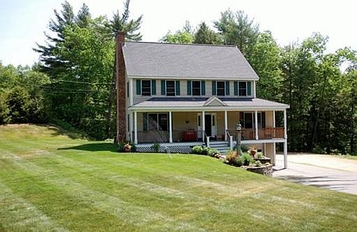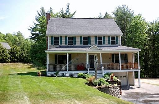 Spacious Colonial with Farmers porch nicely sited on acre lot set off the road. Offers master bedroom/bath on first level, large entry foyer w/ hardwood, kitchen, breakfast bar and dining opens to the fire placed living room. Second level boasts 4 additional bedrooms and full bath. Lower level has sitting area and oversize laundry/showered bath with loads of storage, All this plus over size 18x27 garage with work area and more storage. Nicely landscaped and Efficiently constructed with Pella windows. Great home in a great setting.