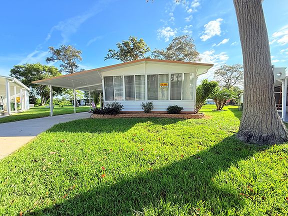 Located in an Active 55+ Community, We're Calling All Snowbirds!This fully furnished, turn-key home is ready for you to move right in. Beautiful vinyl flooring runs throughout, making clean-up a breeze. Both bedrooms feature spacious walk-in closets, and the bathrooms have been updated with modern vanities. Enjoy the bright, all-season front room under air perfect for relaxing or entertaining and note that it s extra living space not included in the square footage! The large living room flows nicely into a dining area with a built-in hutch for added storage. The kitchen boasts a newer dishwasher and Whirlpool refrigerator with ice maker. Outside, you ll find a large storage shed and freshly maintained landscaping all just a short walk from the clubhouse and community amenities. Don t miss this opportunity! Present all offers and schedule your appointment today to view this amazing home.