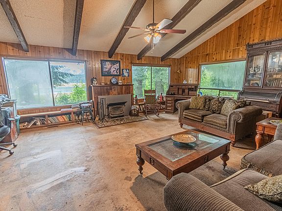 This home is rich in history and vintage charm, awaiting someone with a vision to restore it to its full potential. Live comfortably as you renovate it. When you step inside, you're greeted by vaulted ceilings, rich wood paneling, and large windows that frame a breathtaking view of the Alsea River! A separate studio provides space for guests or creativity. Situated on a large parcel of marketable timber, the property offers as much potential as the home does. The yard boasts a variety of mature trees, including apple, cherry, peach, pear, bay leaf, and rosemary, complemented by blooming roses and rhododendrons. Grow your own food! Elk and deer are frequent visitors! This property is a haven for outdoor enthusiasts seeking tranquility, privacy, and a serene natural setting.