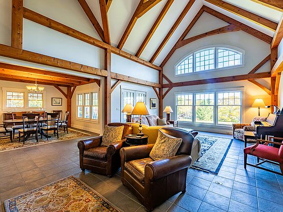 With expansive views of Penobscot Bay and a serene, park-like setting, this exceptional post and beam home is ready for you to enjoy. Custom-built with the finest materials and with energy efficiency in mind, this inviting and light-filled home has a classic coastal feel. With exposed beams, an open floor plan, high ceilings and abundant windows, this home is brilliantly designed for easy living and gracious entertaining. The home features a first floor en-suite primary bedroom plus two additional en-suite bedrooms on the 2nd floor, all with ocean views. In the summer, savor the sea breezes from the screened-in porch or covered porches, and in the colder months gather around the wood-burning fireplace for ambiance and comfort. On the lower level, a large finished room with full-sized windows and ocean view is perfect for use as a home gym, office, studio or den. Additionally, the home has an attached two car garage with a partially-finished room above for storage or future conversion. As a bonus, this home is set within the exclusive Eastward community, a beautifully curated neighborhood that offers tennis/pickleball courts, a swimming pool, a walking path along the ocean's edge and other conveniences, offering the best of coastal Maine living. 82 Eastward is ideally located adjacent to the Samoset Resort Golf Course and just minutes from museums, restaurants, galleries and shops.