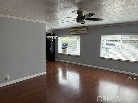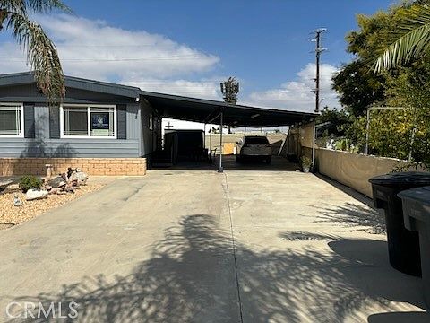 This Manufactured Home sits on its own spacious land with over 6000 sqft! Large driveway and spacious covered patio with concrete flooring. The interior consist of a spacious living room and dining area. Primary bedroom with access to primary bath and large second bedroom and enclosed patio. Split air conditioners in both bedrooms, living room and in enclosed patio. Recently upgraded Kitchen with stove, microwave and refrigerator. Washer & Dryer are included in lease and are located in closet off kitchen area. Three storage sheds and much more!