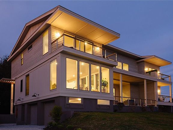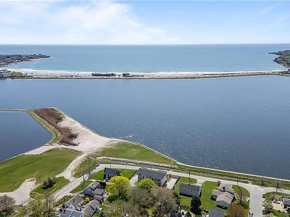 WATERFRONT Completed in 2024. Island Breeze is an exceptional, clean-lined contemporary residence showcasing stunning views over Easton’s Pond, Easton’s Beach, and the Cliff Walk. Thoughtfully designed to maximize its setting, the home features floor-to-ceiling windows along the east and south-facing elevations, flooding both levels with light and views. The open-concept layout flows seamlessly throughout. At the ground level, a welcoming mudroom, two-car garage, large den, water-view office, and elevator access. On the first floor, the heart of the home is the kitchen, with ample counter and cabinet space, a large island, and direct access to a covered water-view porch, off of the living/dining room. Also on this level is a full bath, mudroom/laundry room, and the first of four en-suites—complete with its own balcony overlooking the water. The second level is centered around a den with panoramic views. The southwest wing offers a luxurious primary suite with a private balcony, walk-in closet, kitchenette, and laundry area, plus an additional en-suite—together designed for privacy. The southeast wing includes another spacious en-suite with its own water-view balcony. Outdoor living is equally captivating, with 800 square feet of covered porches and decks, plus a fire pit perfect for sunset gatherings. There is also potential for a pool at the front or rear of the property. Island Breeze combines modern elegance, thoughtful design, and breathtaking waterfront living.