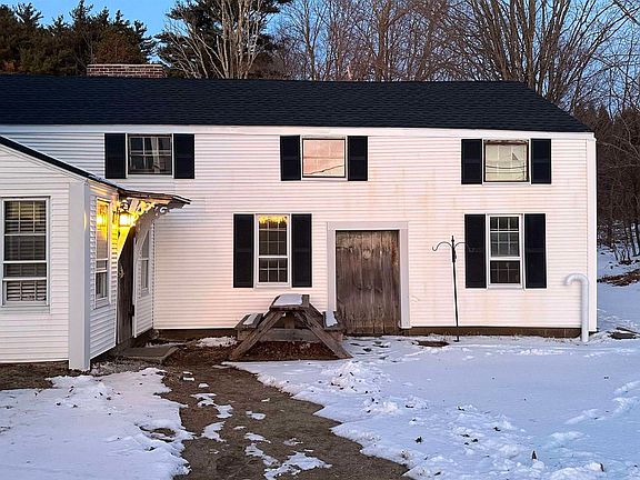 Antique, 1770 farmhouse with three acres on the Robert Frost Scenic Byway Abuts expansive conservation land, with sunset views in a rural, stone-walled area, yet minutes to route 93. At least one acre of open pasture at the edge of trails, zoned rural. This house must be seen to be appreciated. Beautiful hand-crafted wood latch doors, exposed hand-hewn beams, and dark, wide plank floors. Built before the signing of the Declaration of Independence, it is a home with modern updates and old-world craftsmanship. Neutrally decorated, this house is move-in ready with warm and welcoming tones. There is much-exposed dark walnut colored wood with coordinating dove gray walls. There are six options for bedrooms with generous closet spaces in this four- bedroom home. The main floor and basement washer-dryer hook-ups are convenient. Two options for large family meals are in the front dining room or out back near the brick-walled wood stove. Plenty of space for memorable family gatherings and cozy nights in New England. Recent updates include a new 4-bedroom septic system, newly shingled roof, updated electrical panel, stainless steel appliances, freshly painted walls-ceilings-cabinets, wall to wall carpet upstairs, and street level driveway. Connected addition is the perfect mudroom or heated workshop with closets OPEN HOUSE : Saturday February 15 11am - 1pm Showings to begin on February 15