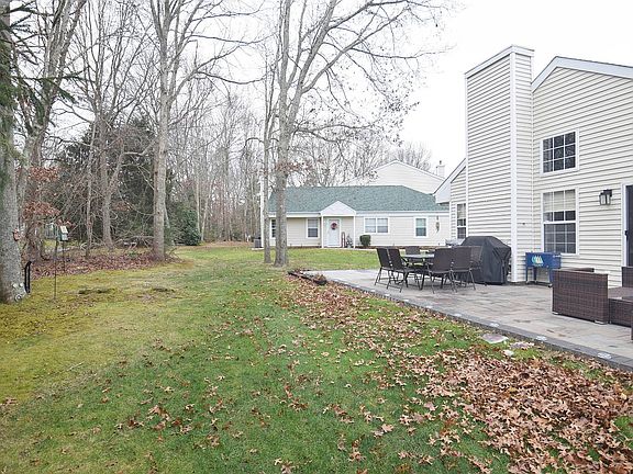 Experience luxury living at 82 Fox Court, a stunningly renovated 4-bedroom, 2.5-bath townhouse located in the highly sought-after gated Silver Ponds Community in Manorville. This extraordinary home stands out with its custom craftsmanship, high-end finishes, and designer upgrades. The home welcomes you with a spacious Great Room featuring cathedral ceiling, creating an open, elegant atmosphere perfect for both everyday living and entertaining. The gourmet chef's kitchen is a true showpiece, offering a convenient pot filler, quartz countertops, an oversized farmhouse sink, custom-built cabinetry, huge center Island as well as premium Bosch & Bertazzoni appliances.... ideal for those who appreciate quality. The sophisticated dining room features full-wall custom built-ins, a wine rack, and a wine refrigerator which conveniently opens out to the new paver patio... perfect for alfresco dining with the tranquil pond and beautiful trees as a stunning natural backdrop. The home's bedrooms layout provides exceptional comfort and flexibility. The first-floor offers the primary bedroom with an en-suite bath and spacious closets, along with a additional first-floor bedroom featuring custom built-ins. The second floor includes two large bedrooms and a shared full bath, making this home ideal for multi-generational living or guests, A conveniently located first-floor half bath serves guests with ease. Practicality meets beauty in the home's utility spaces. A beautifully crafted laundry room with shiplap detailing adds charm and function, while the 2-car garage with a new door and opener provides ample storage and convenience. The exterior is equally impressive, showcasing a new paver walkway, new paver patio, and a peaceful pond view that enhances the home's serene setting. Located within the Eastport-South Manor School District, residents enjoy resort-style amenities including a clubhouse, gym, three pools, tennis courts, basketball courts, a playground, and scenic walking paths. The community is also conveniently close to the LIE, Sunrise Highway, shopping,along with area beaches.farm stands, horse farms, nursery's and within 15 minutes to everything that you would ever need all in the Town Of Riverhead. This exceptional home offers luxury, privacy, and comfort all within one of Manorville's premier gated communities.