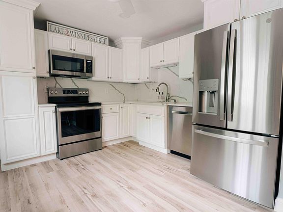 Absolutely turnkey and ready to impress! 82 Garden Circle offers effortless living in the gated, lakefront community of South Down Shores on Lake Winnipesaukee. This rare unit features a 2-car garage (a standout upgrade in the neighborhood) and a private, tree-lined patio with new landscaping, perfect for relaxing or entertaining in peace. Every inch has been thoughtfully renovated so you can move right in and start enjoying lake life. The home features brand-new bathrooms with ceramic tile, stylish vanities, and a custom-tiled walk-in shower with a glass door. The kitchen is fully updated with new appliances, countertops and lighting under cabinets. The laundry area has been reconfigured to make room for a linen closet. Plus upgraded flooring, recessed lighting, ceiling fans, and motorized blackout shades in the bedrooms. Big-ticket items? Already done. In 2022, a new Mitsubishi heating/cooling system with 3 zones and a new hot water tank were installed. The patio landscaping has been fully refreshed with new plantings, and there's ample storage in the attic above the garage. Public water and sewer add everyday convenience. South Down Shores offers resort-style amenities: a private beach, day docks, tennis, pickleball, bocce, basketball courts, playgrounds, picnic areas, and scenic walking paths. Nothing left to do, just unpack and embrace the best of New Hampshire’s lakeside lifestyle.